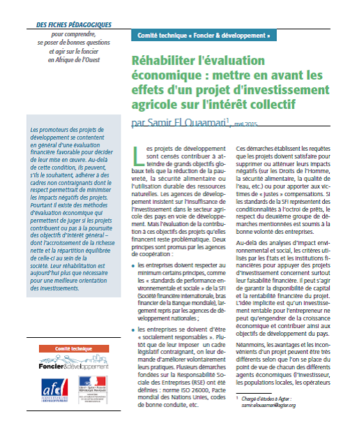 Analyse des projets d’investissements agricoles à emprise foncière : des principes internationaux aux outils opérationnels