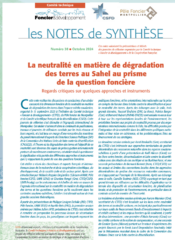 This briefing note, which aims to better document the relationships between land tenure and neutrality in the Sahelian space, is based on a workshop mobilizing numerous specialists in these fields. It allows us to explore these notions and relate them to different scales of analysis, from global to local.