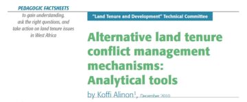 Conflicts related to natural resource management, and especially land tenure, tend to be more and more exacerbated. Judicial systems responsible in theory for the settlement of land conflicts have failed to find efficient solutions in the particular context of African countries, where national legislations and traditional customs coexist. This perspective prompts consideration of alternative land tenure conflict management mechanisms as the appropriate option for these countries.